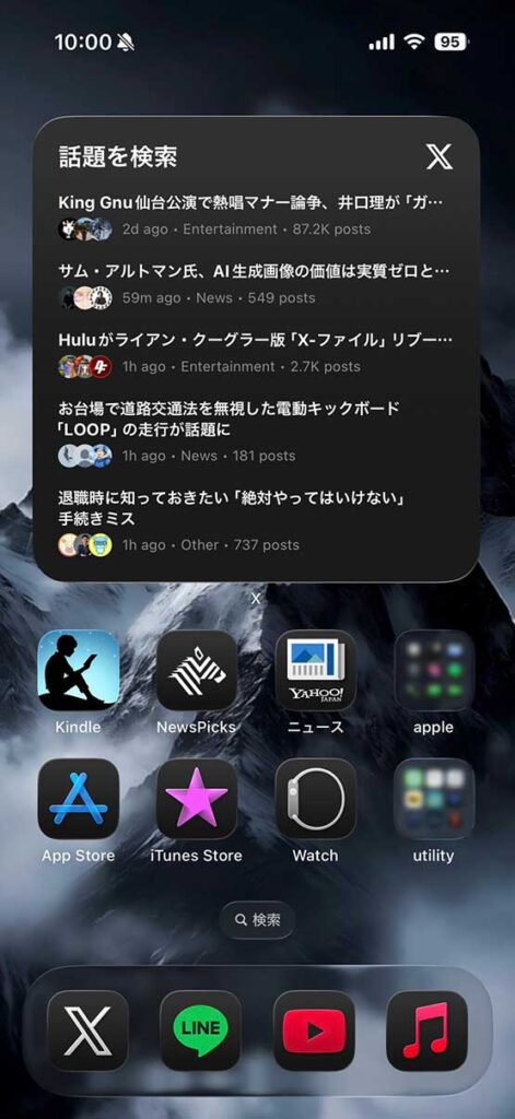 ※NewsPicksとYahoo!ニュースとX(上下スワイプで切替) - 3、4段目は主に書籍、ニュース、apple系のアプリ